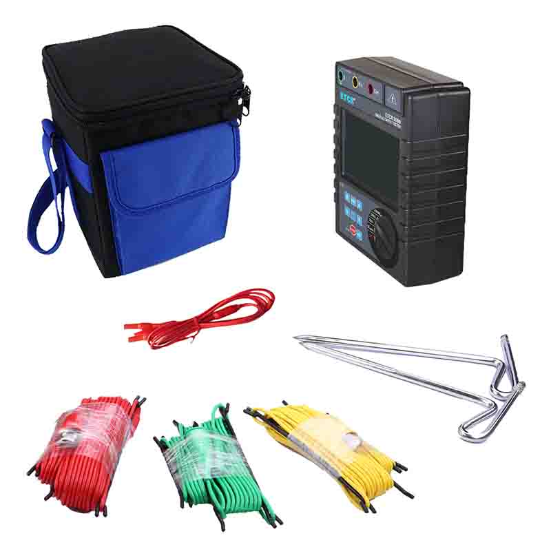 ETCR3000數(shù)字式接地電阻測試儀由主機(jī)、測試線等組成。具有獨(dú)特的線阻校驗(yàn)功能,對現(xiàn)場低值接地電阻測量更精確,能避免因測試線長時(shí)間使用線阻變化引起的誤差;能避免因測試線未完全插入儀表接口或接觸不良引起的誤差;能避免因用戶更換或加長測試線引起的誤差等。儀表采用超大LCD顯示,白屏背光,棒圖指示,一目了然。存儲(chǔ)400組數(shù)據(jù),具有最大、最小、平均值指示,具有歷史數(shù)據(jù)讀取、查閱等功能。