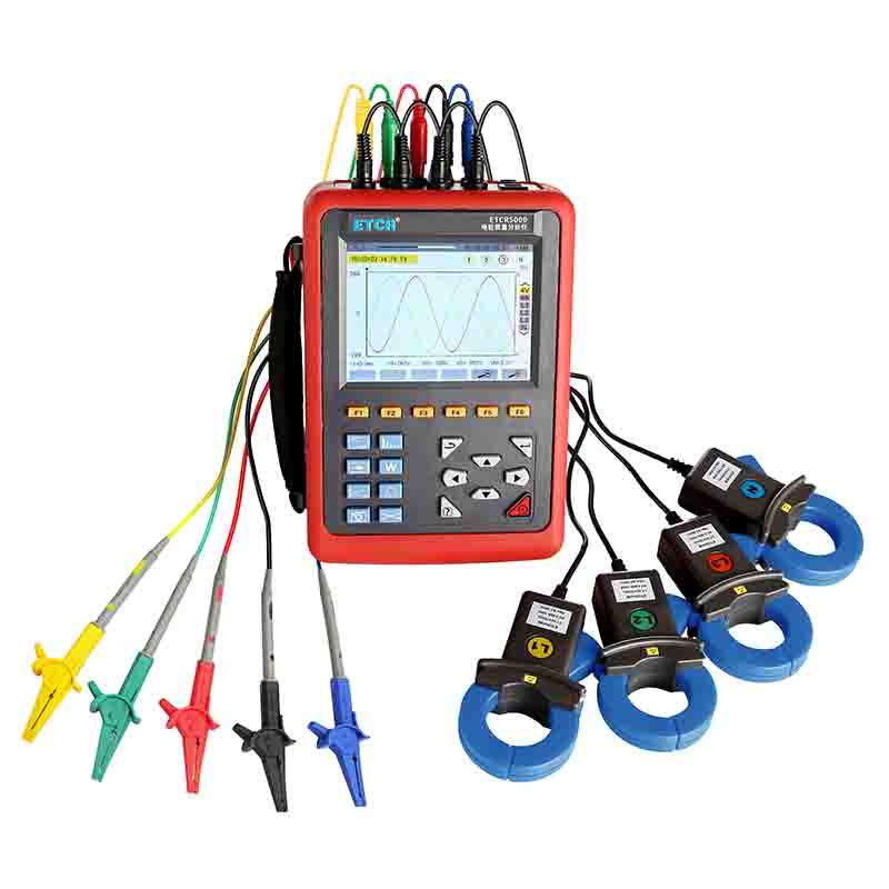 ETCR5000電能質(zhì)量分析儀又稱電力質(zhì)量分析儀、電力參數(shù)測試儀、諧波分析儀,是一款專為現(xiàn)場測試三相電能參數(shù)的多功能、智能化綜合型測試儀器。可同時測量4路電流(ABC三相及中性線電流),4路電壓(ABC三相電壓及中性線對地電壓)、電流電壓的峰值、一段時間內(nèi)的最大最小值、三相不平衡度、短時電壓閃變、變壓器K因數(shù)、有功功率、無功功率、視在功率、功率因數(shù)、位移功率因數(shù)、有功電能、無功電能、視在電能、諧波比、總諧波失真度等;顯示電流電壓的實時波形、相量圖、諧波比柱形圖;動態(tài)捕捉電壓電流瞬時變化,監(jiān)測啟動電流,監(jiān)測各電力參數(shù)并生成告警列表,長時間記錄測試數(shù)據(jù)并生成趨勢曲線圖等功能。適用于電力、石化、冶金、鐵路、工礦企業(yè)、科研院校、計量部門等。