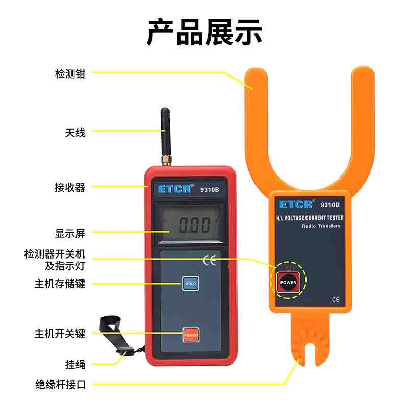 ETCR9310B大口徑叉形高低壓叉形電流表由叉形鉗頭、接收器、伸縮絕緣桿組成。在110kV以下測試需帶絕緣桿操作(可定制500kV以下測試),在600V以下可不使用絕緣桿。儀表還具有數(shù)據(jù)保持、數(shù)據(jù)存儲等功能。