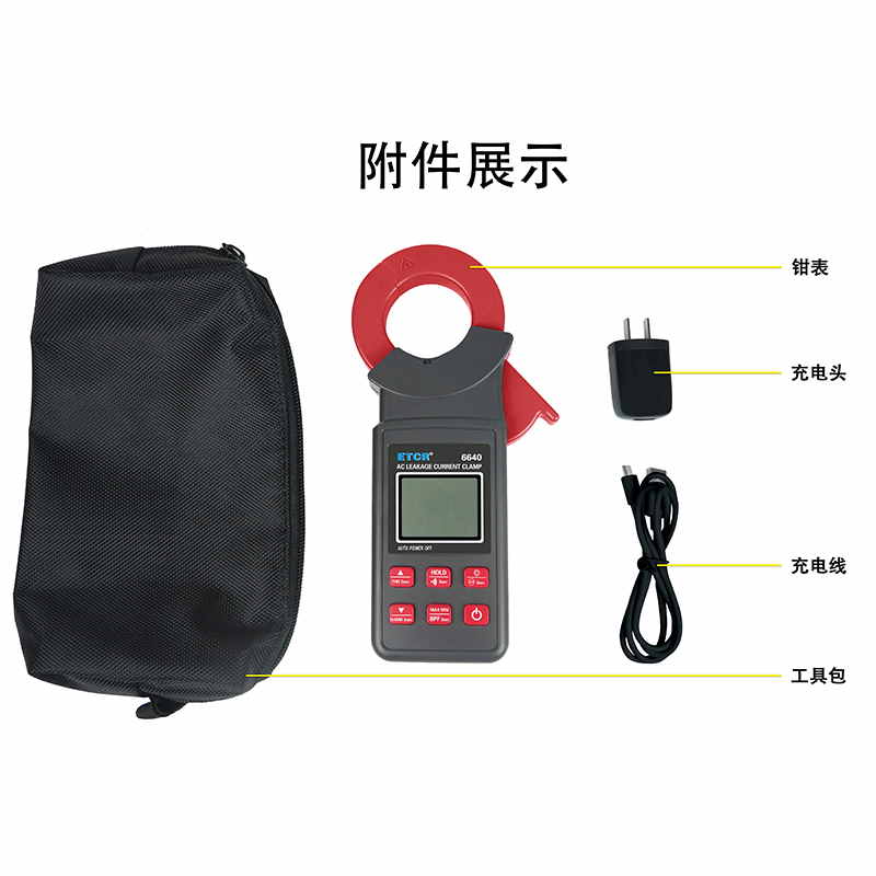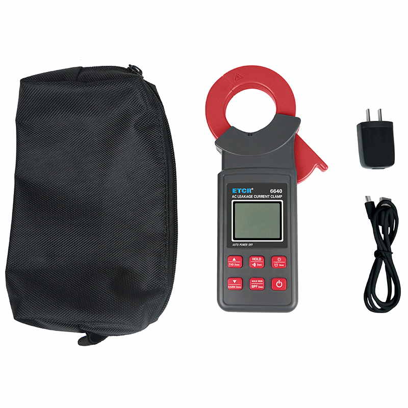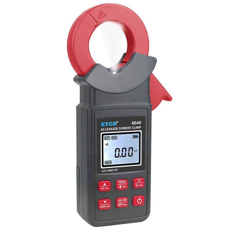 ETCR6640鉗形漏電流表可測試40Hz~1kHz頻率范圍的電流。鉗表還具有背光、手電筒、數(shù)據(jù)存儲、藍(lán)牙通訊等功能。鉗表使用大容量鋰電池type-c充電口,是一款新型的電工安全檢測必備工具。