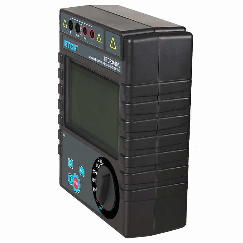 ETCR3460A絕緣電阻表又名兆歐表、絕緣電阻測試儀,用于絕緣電阻測試。儀表具有LCD大屏幕帶背光顯示、數據保持、自動放電、自動關機等功能。儀表具有測試計時,電壓監(jiān)測功能,回路電壓大于36V時,儀表將禁止測試以保護被測物及人員安全。儀表功能操作簡易,絕緣電阻值,測試時間,輸出電壓同屏顯示,具備交流電壓、直流電壓測試功能。