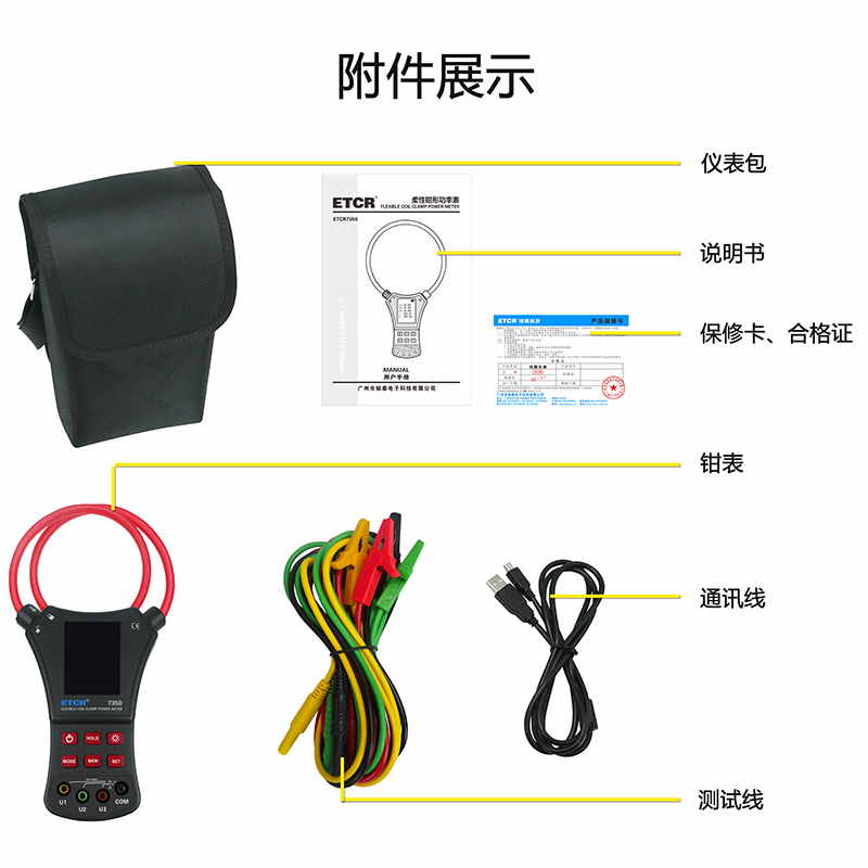 | ETCR7350B柔性鉗形功率表 | AC 0.0A~6000A | 0.00V~600V | 0.0°~360° | Φ300mm | 200組 |