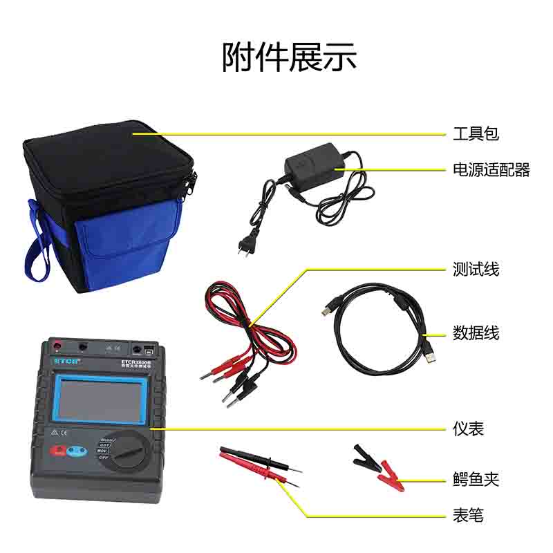 | 絕緣電阻測試功能 | 絕緣電阻(Mohm)、極化指數(shù)(PI)、吸收比(DAR)測試 |