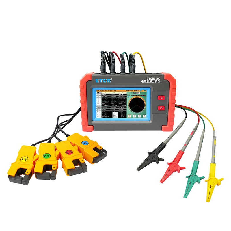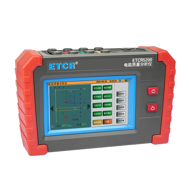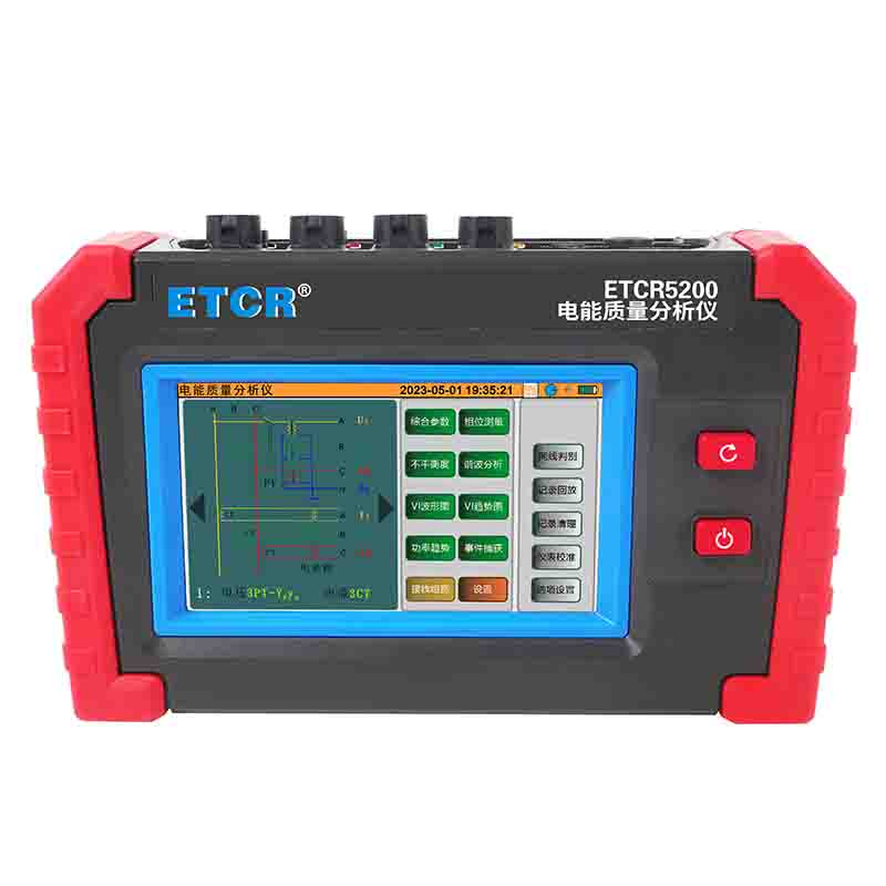 ETCR5200迷你型電能質量分析儀又稱電力質量分析儀、電力參數(shù)測試儀、諧波分析儀,是一款專為現(xiàn)場測試三相電能質量的高精度綜合型測試儀器。儀表具有智能化、功能完善、人機操作簡潔、中英文雙語操作界面等特點。儀表采用5寸觸摸彩屏、體積小重量輕、攜帶方便,可選配多款電流鉗。儀表可同時測量4路電流(ABC三相及中性線電流),3路電壓、三相不平衡度、有功功率、無功功率、視在功率、諧波比、總諧波失真度等;顯示電流電壓的實時波形、相量圖;動態(tài)捕捉電壓電流瞬時變化,監(jiān)測啟動電流,監(jiān)測各電力參數(shù)并生成告警列表,長時間記錄測試數(shù)據(jù)并生成趨勢曲線圖等功能。適用于電力、石化、冶金、鐵路、工礦企業(yè)、科研院校、計量部門等。