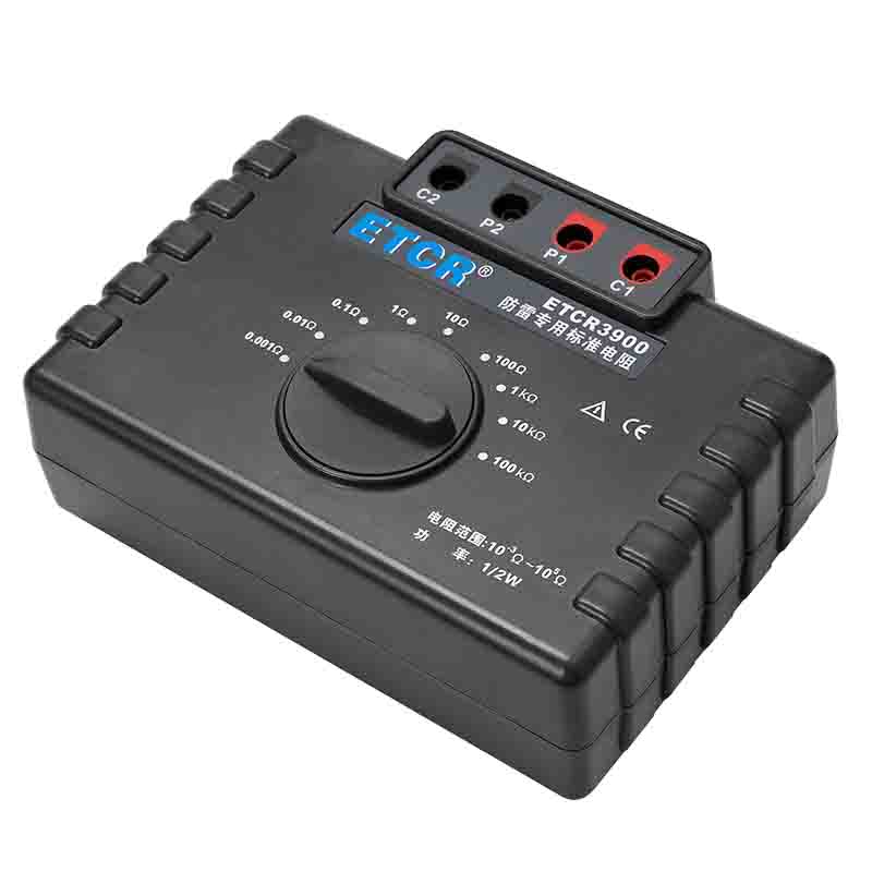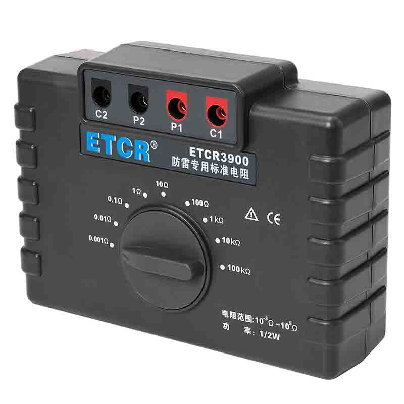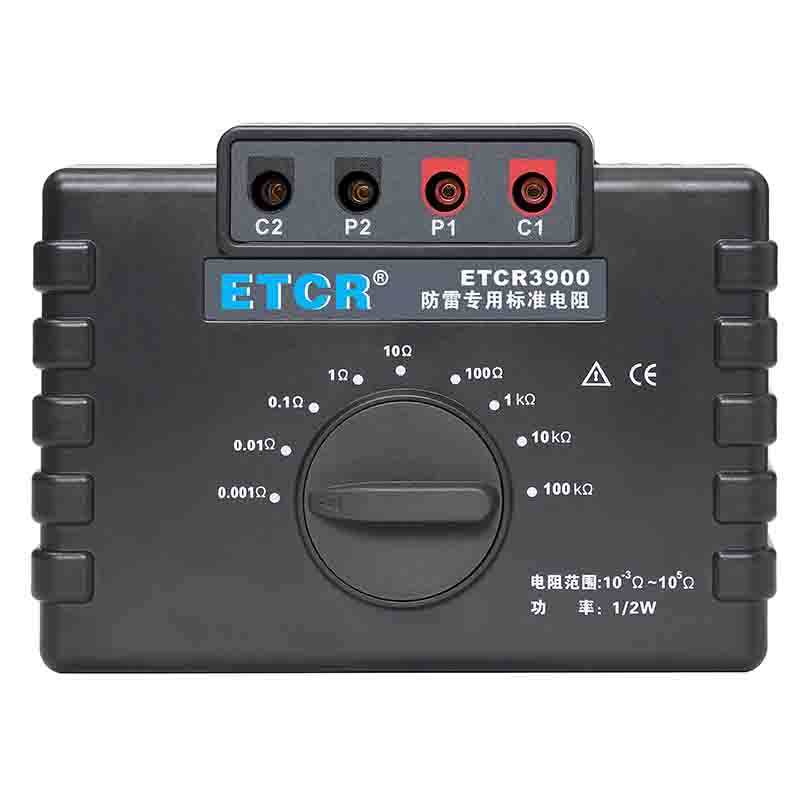 ETCR3900防雷專用標(biāo)準(zhǔn)電阻由9個1/2W高精度線繞電阻組成,校準(zhǔn)電阻時直接換擋測試,無需更換測試線,性能穩(wěn)定結(jié)構(gòu)堅(jiān)固,校準(zhǔn)測試特別方便。采用的高精度線繞電阻最高精度達(dá)0.05%,其阻值包括1mΩ、10mΩ、100mΩ、1Ω、10Ω、100Ω、1kΩ、100kΩ完全滿足國家氣象局38號令【雷電防護(hù)裝置檢測資質(zhì)管理辦法】中規(guī)定的10-3~105Ω范圍。本標(biāo)準(zhǔn)電阻主要用于接地電阻測試儀、等電位測試儀等儀器的校準(zhǔn)。廣泛應(yīng)用于建筑質(zhì)檢站、監(jiān)理公司、建筑施工單位、防雷公司、電力部門等。