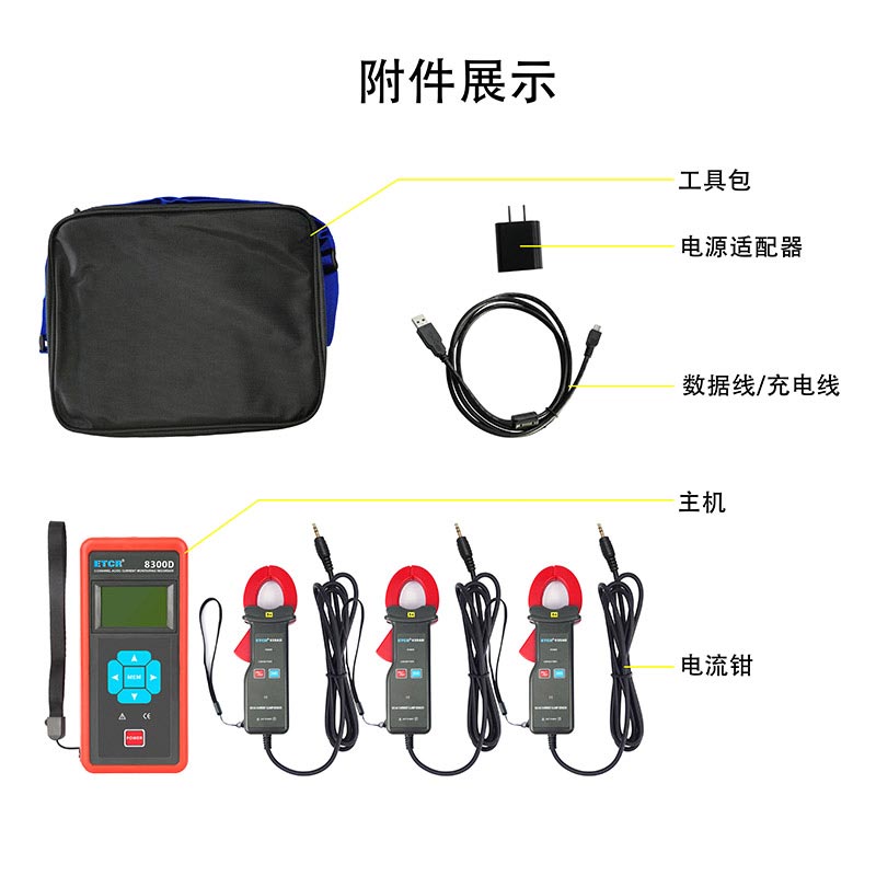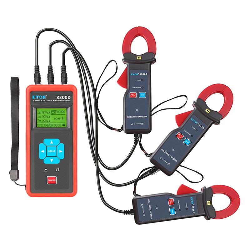| ETCR8300三路鉗形漏電流記錄儀 | Φ30mm | AC 0.00mA~20A | 7天 | 1秒-99分鐘 | 20萬組 | 鋰電池 | 有 |