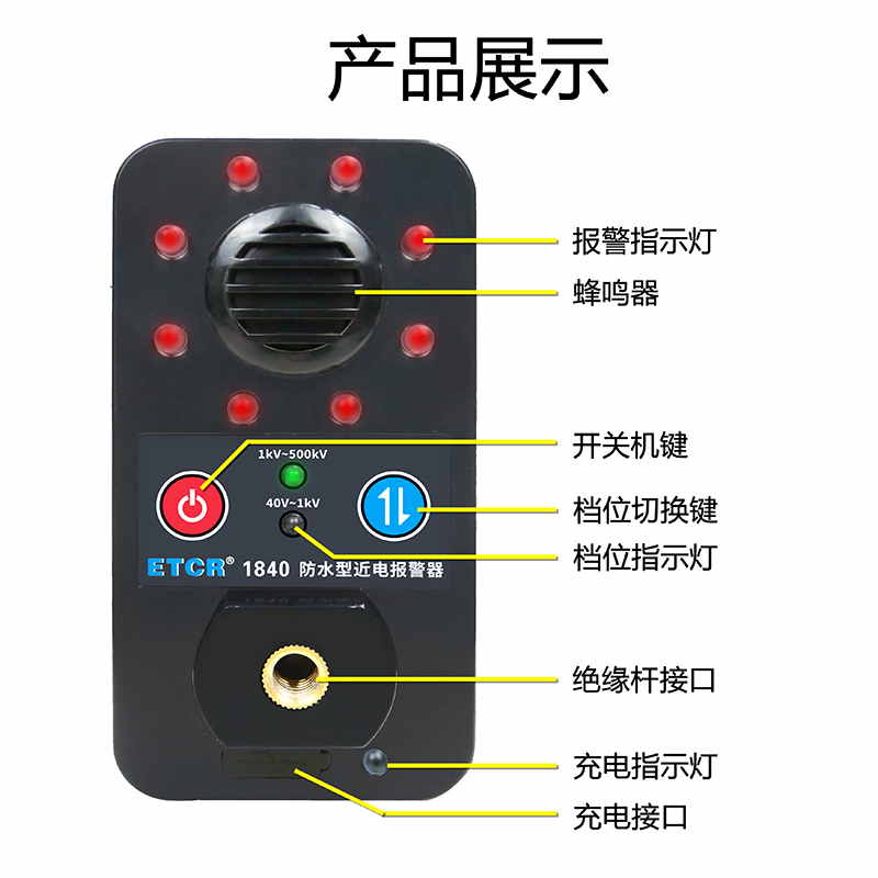| ETCR1840防水型近電報警器 | —— | 1kV~500kV;40V~1kV | IP67 | 非接觸式 | |