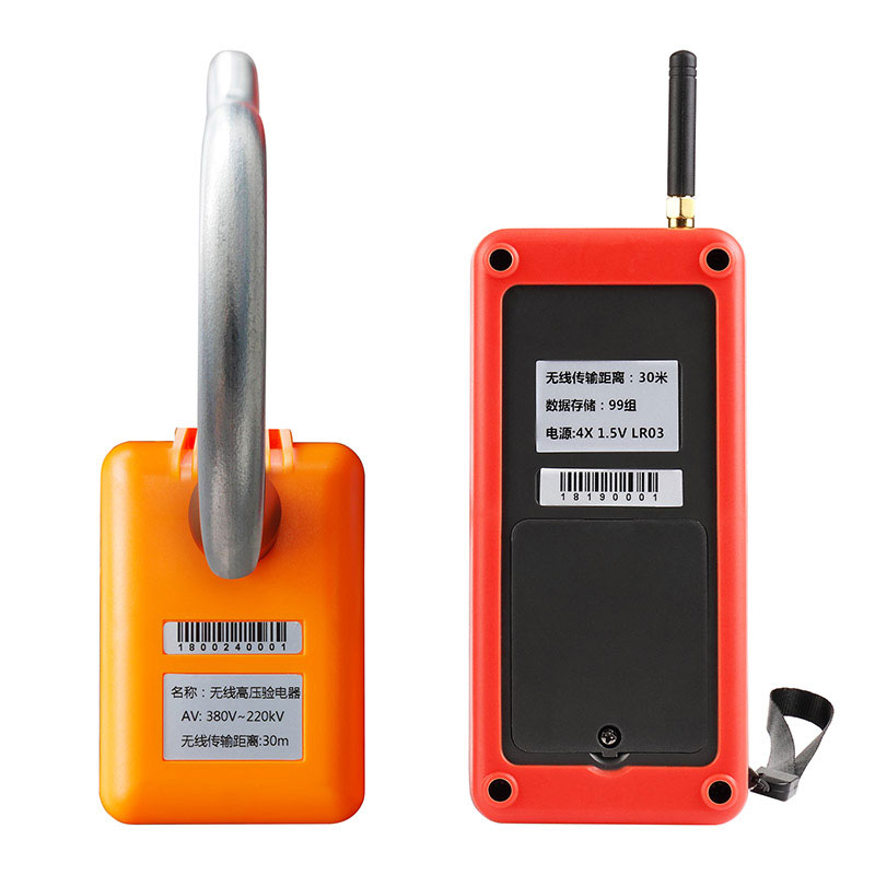 1、用絕緣桿將探測(cè)器掛在高壓線路上,即可驗(yàn)電并顯示高壓線路電壓及電流。