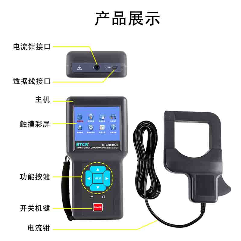ETCR8100B變壓器鐵芯接地電流測試儀采用高速微處理器,3.5寸彩色觸摸液晶屏,中文界面操作方便快捷。能實時顯示被測電流的大小及波形;具有報警臨界值設(shè)定及報警指示功能;具有日期時鐘及設(shè)置功能;具有自動關(guān)機功能;具有設(shè)定試品編號功能;具有USB接口,可將存儲數(shù)據(jù)導(dǎo)入電腦,儀表可以存儲數(shù)據(jù)及波形100組。