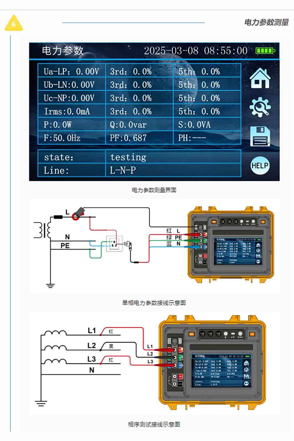 測(cè)試示意圖及接線標(biāo)識(shí)用不同顏色區(qū)分方便用戶在不同功能下的不同使用習(xí)慣。